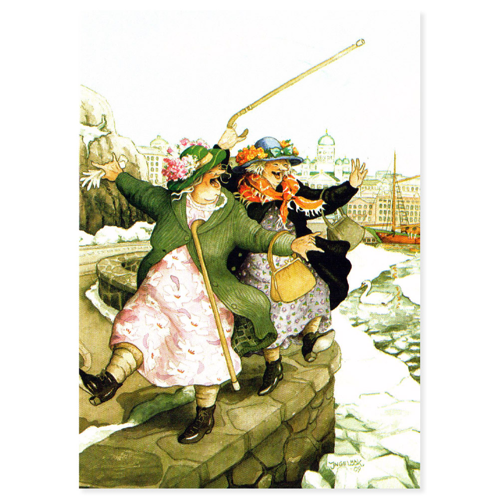 Keywords: postkarte, karte, postcrossing, inge löök, damen, frauen, old ladies, hafen, mauer, meer, schiff, aunties