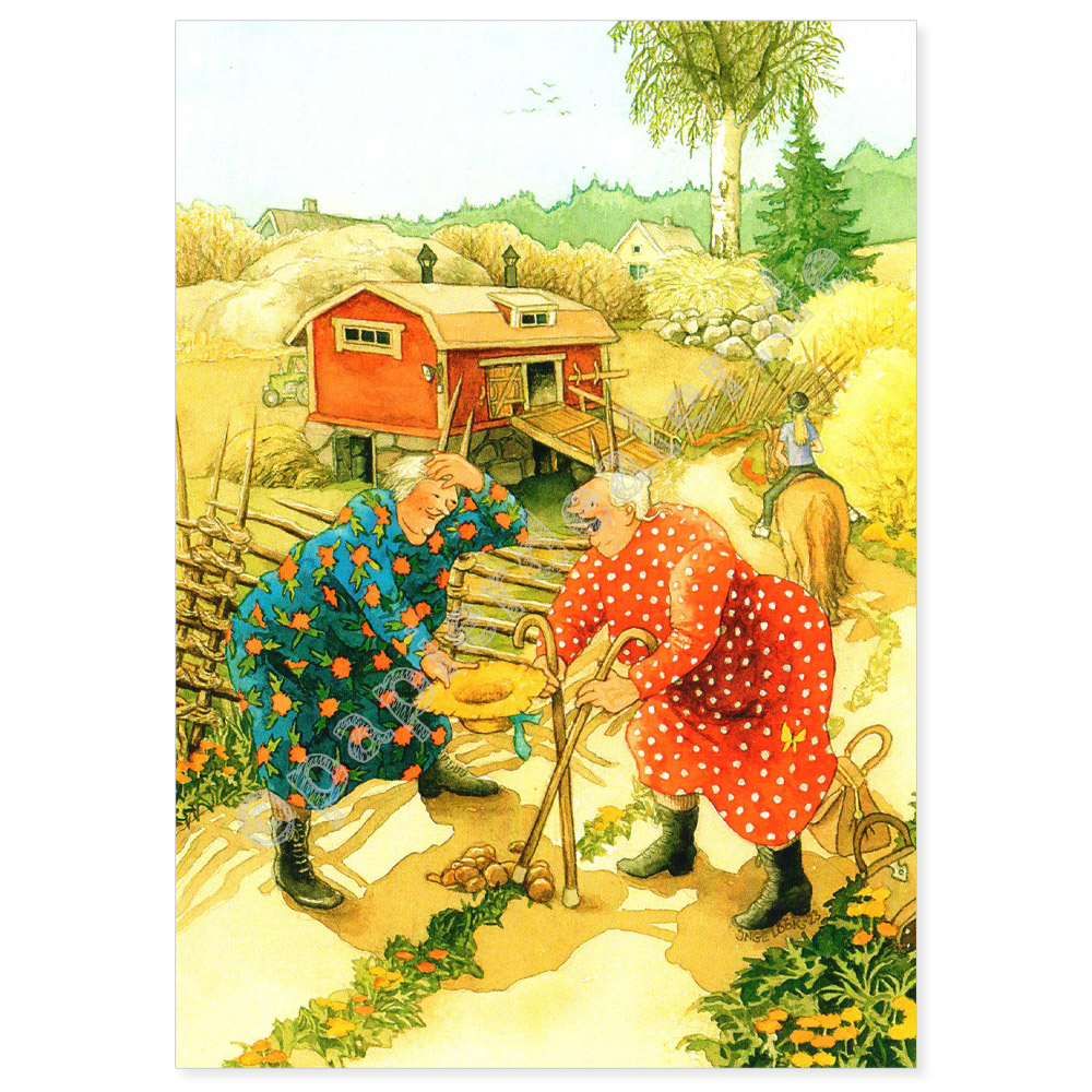 Keywords: postkarte, karte, postcrossing, inge löök, damen, frauen, old ladies, pferd, tier, gelb, aunties