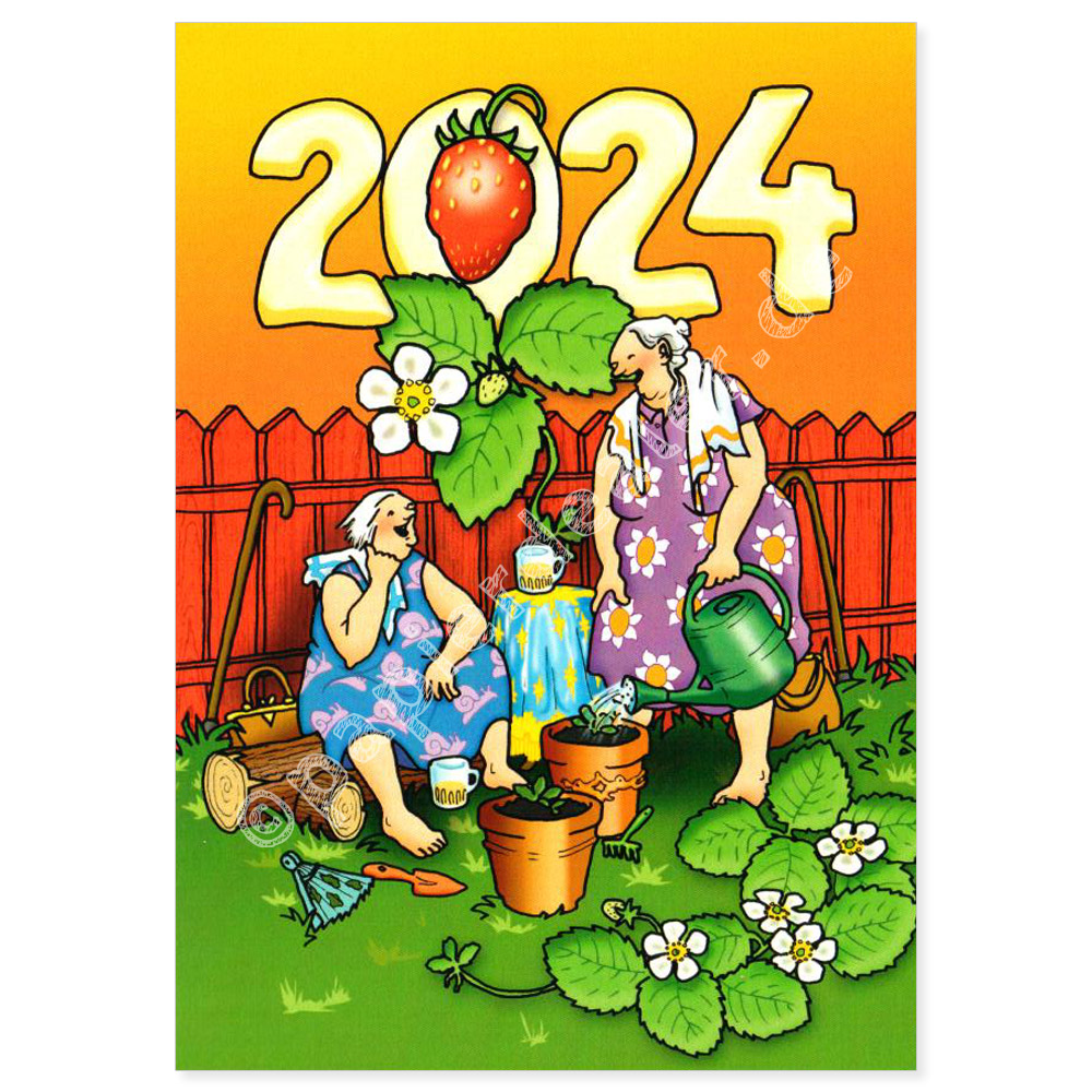 Keywords: postkarte, karte, postcrossing, inge löök, damen, frauen, old ladies, garten, erdbeere, jahreskarte, bunt, aunties