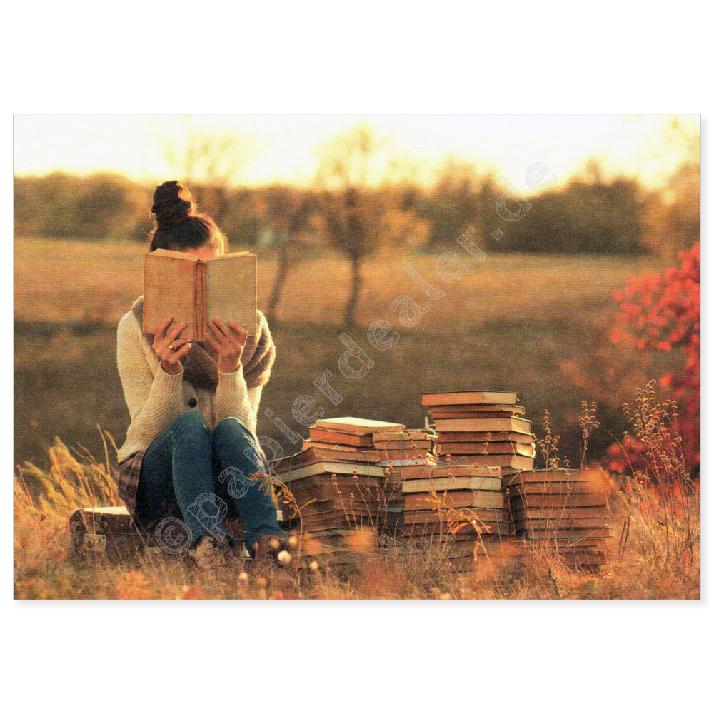 Keywords: postkarte, karte, postcrossing, fsc, naturpapier, klimaneutral, buch, bücher, frau, lesen, natur, enjoy, genuss, braun