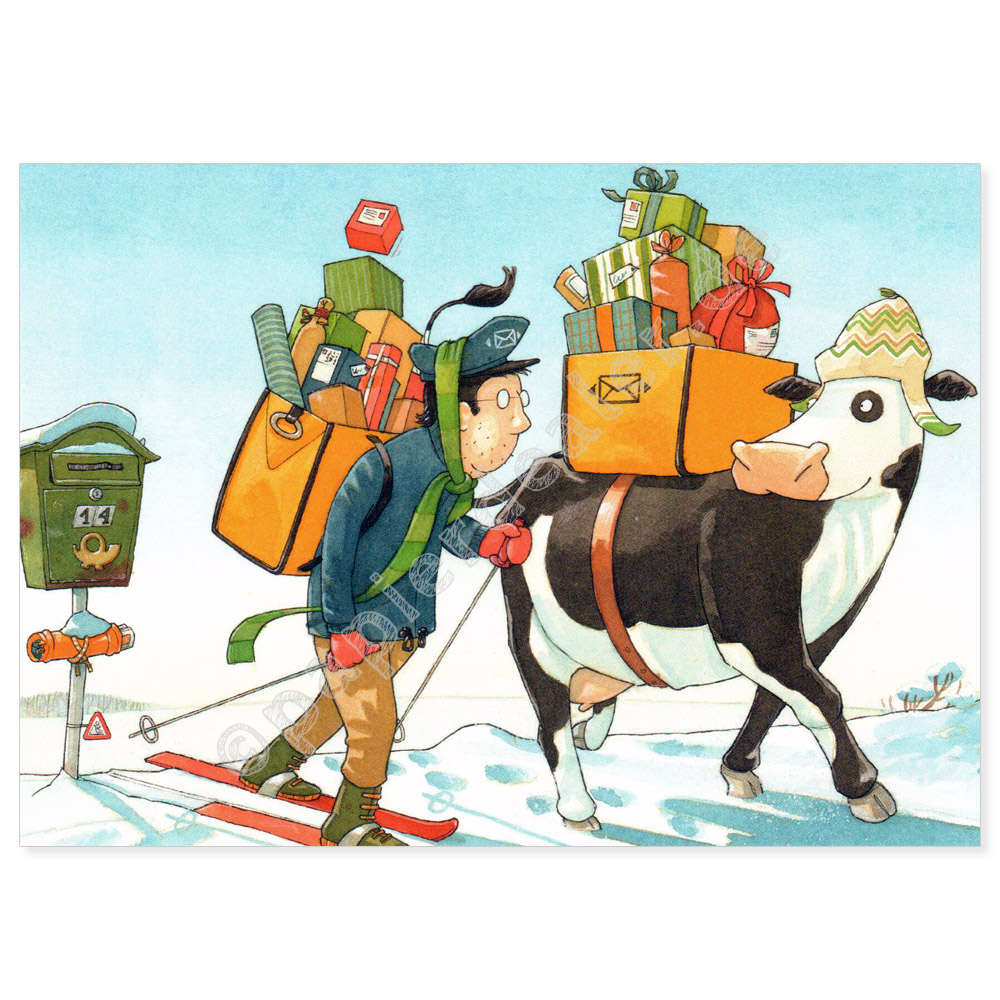 Keywords: postkarte, karte, postcrossing, fsc, naturpapier, klimaneutral, alexander steffensmeier, tier, kuh, winter, schnee, xmas, weihnachten, paket, brief, post, briefkasten, bunt