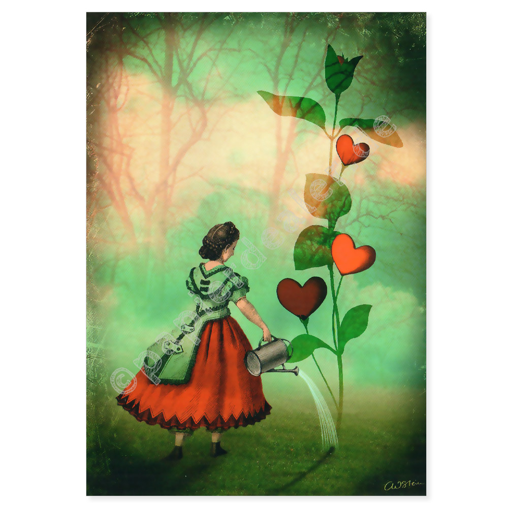 Keywords: postkarte, karte, postcrossing, catrin welz-stein, frau, herz, garten, kunst, grün, rot