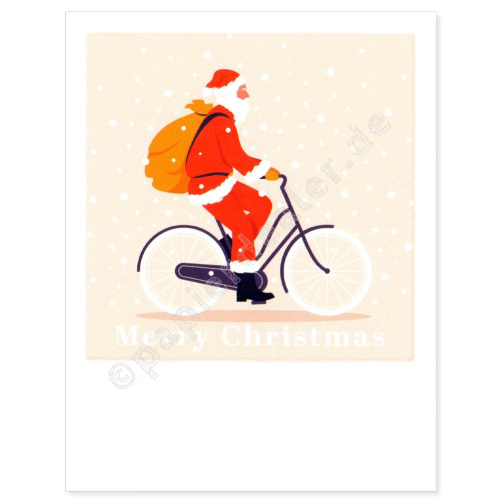 Keywords: postkarte, karte, postcrossing, effektlack, polacard, polacards, weihnachten, xmas, weihnachtsmann, fahrrad, bike, rot, text